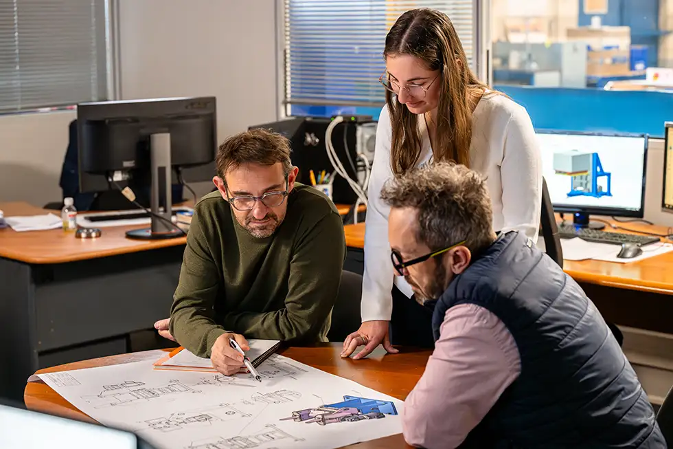 - Projection et chiffrage: lorsqu’il y a consensus sur la solution, le bureau d’études conçoit et dessine. Sa mission se concrétise par des plans d’ensemble en 3D et 2D soumis à validation puis chiffrés.