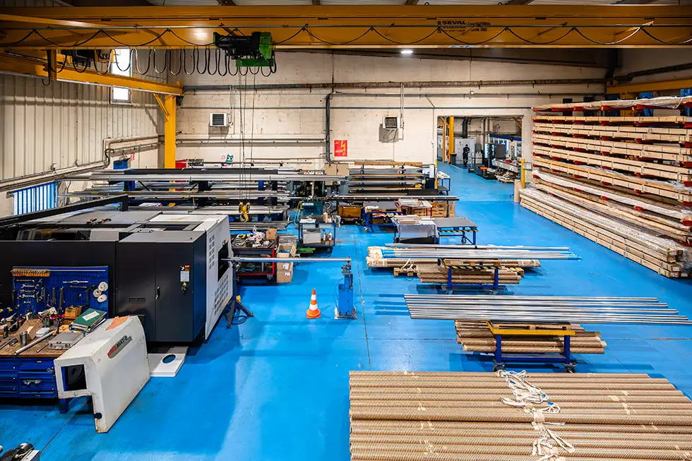 L’espace de l’atelier mécanique est organisée sur une surface de 4000 m2 suivant une logique qui favorise la fluidité des flux des matières, des outillages, ainsi que le flux de pièces avec :